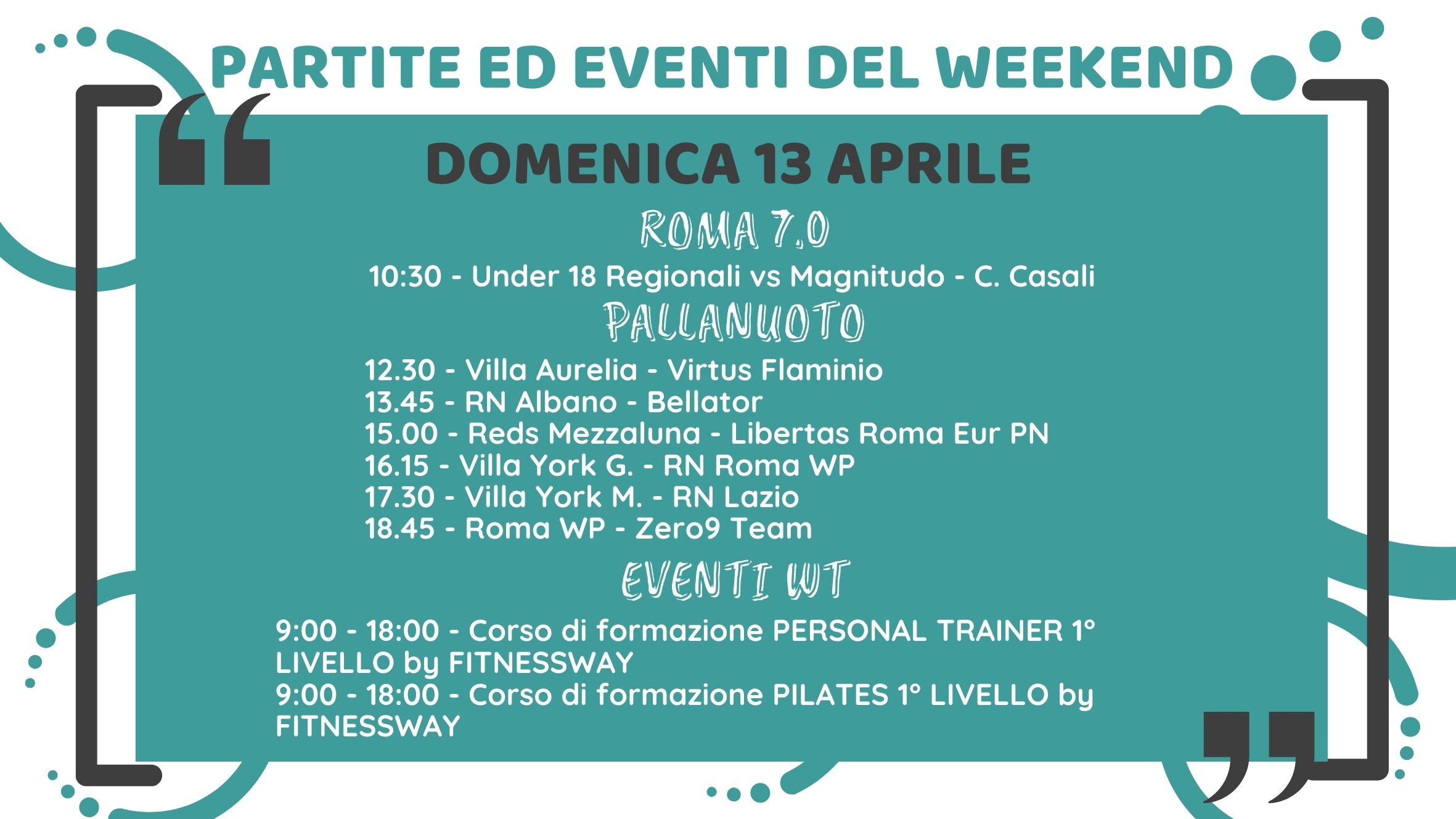 PROGRAMMA WEEKEND Consulta questa sezione per conoscere il programma della Wellness Town nel fine settimana.